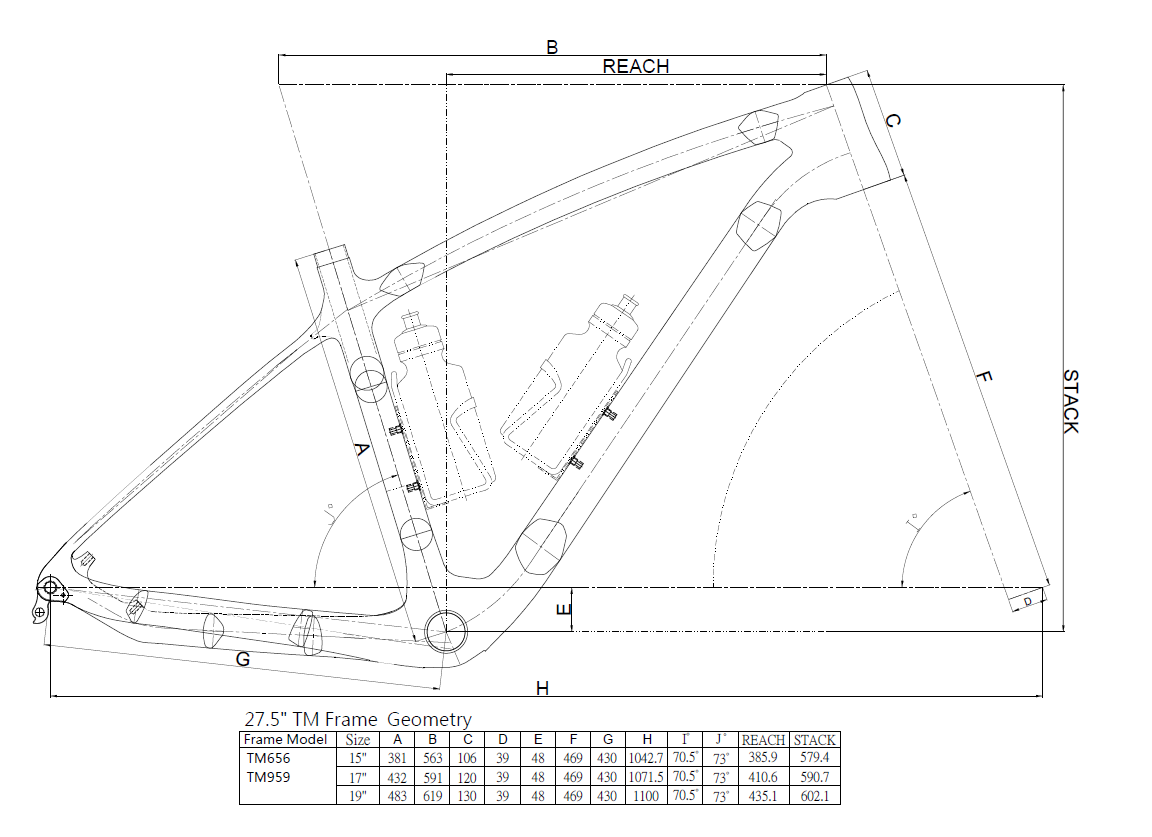Full carbon monocoque 27.5" frame with tapered head tube design for improving safety, handling and stiffness. Oversized tubing for increased stiffness durability and ride comfort. Smaller rear triangle for improving power transfer and stiffness. Oversized BB design creates greater stiffness and more efficient power transfer.