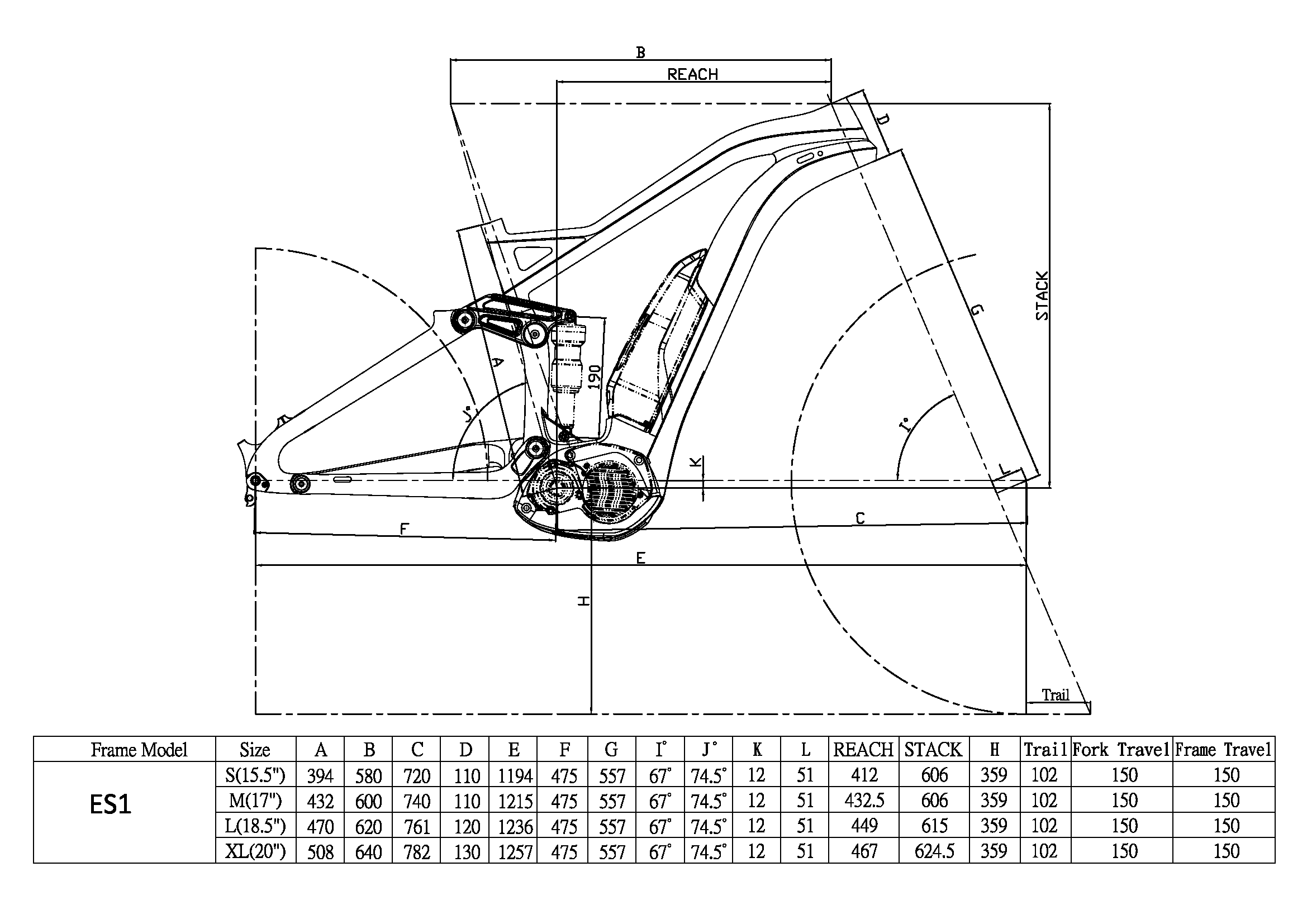 • Rear suspension travel 150mm, front travel 150mm