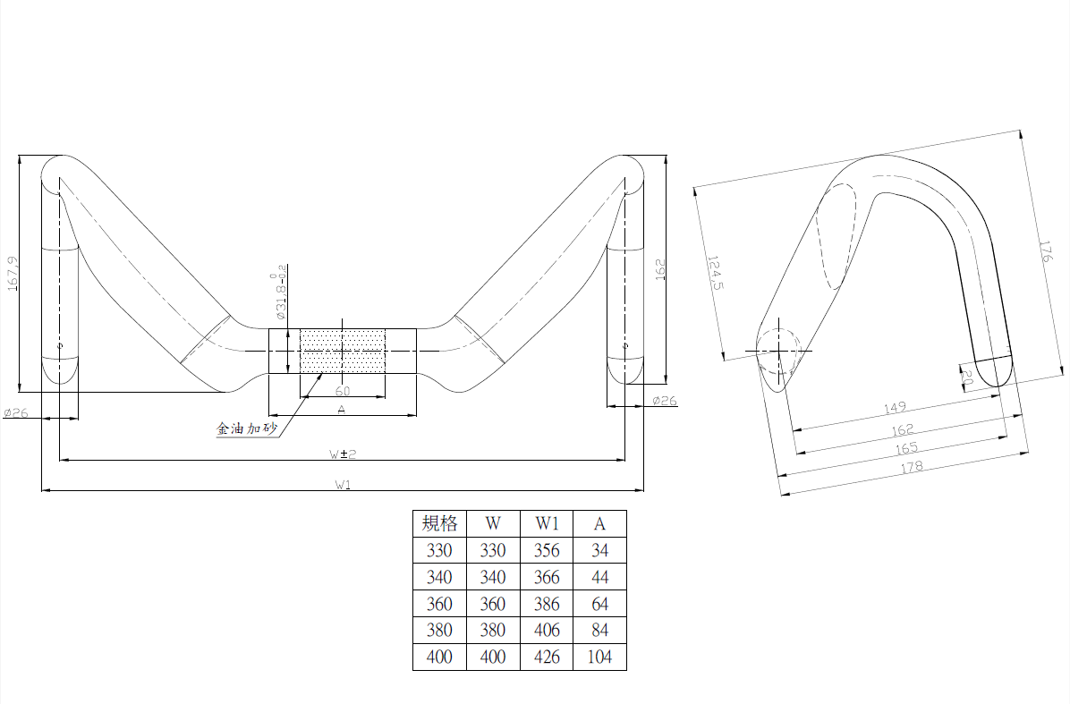 • Flat top for rider comfort and drops positioned for a more agressive rider position.