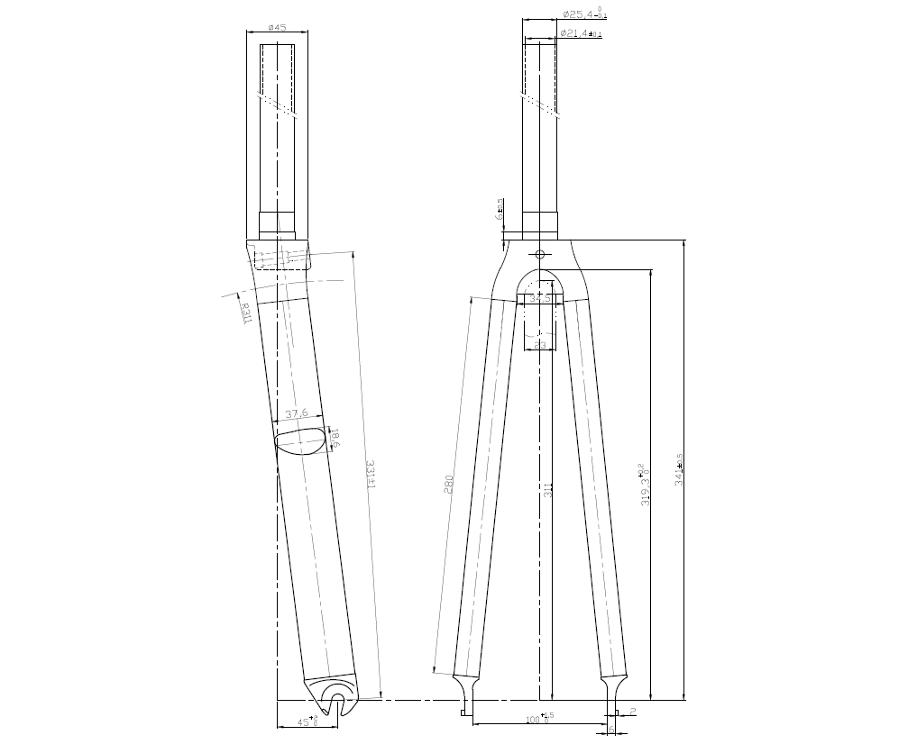 • Rake: 43mm (TT & Triathlon), 38mm(Track)