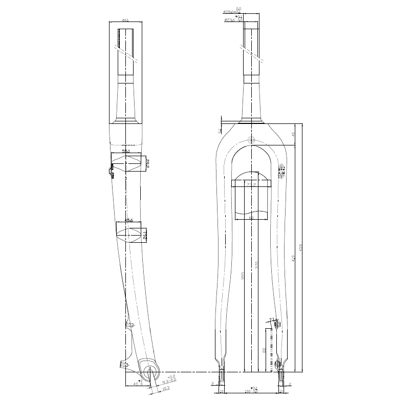 • Integrated carbon dropout design and post mount disc design for 160mm rotor.
